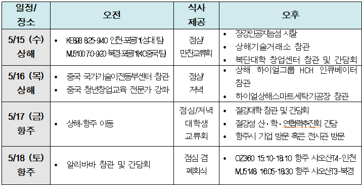 - 산업시찰 장소: 상해/항주 *자세한 일정 아래 차트 참고