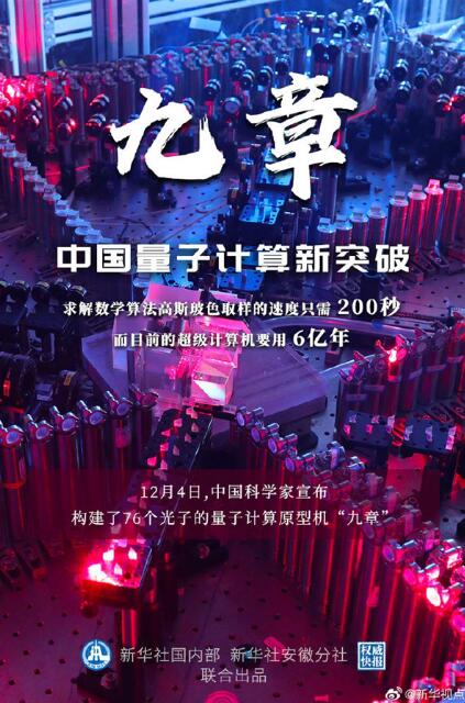 全球第二速度:中国量子计算原型机“九章”问世 里程碑式突破