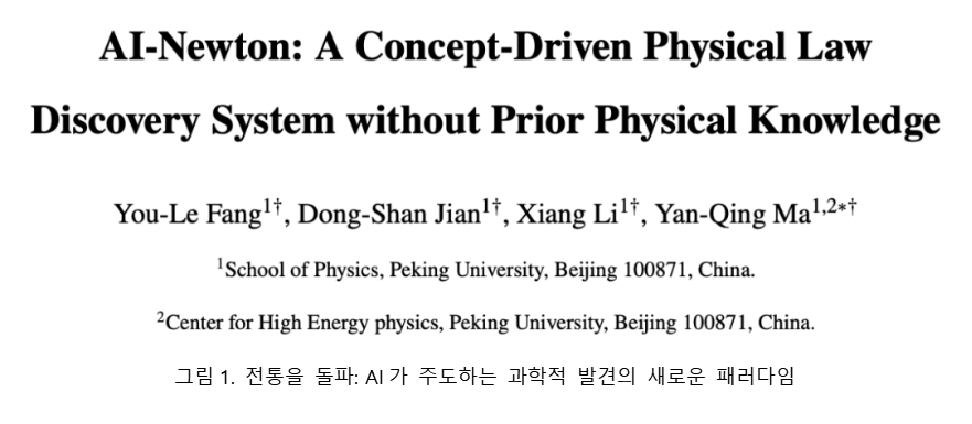 베이징대(北京大学)마옌칭(马滟青) 교수 연구팀이프리프린트플랫폼‘arXiv’에‘AI-Newton: A Concept-Driven Physica