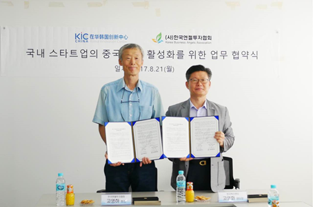 KIC중국(센터장 고영화)은 8월 21일(월)에 한국엔젤투자협회(KBAA)(회장 고영하) 회의실에서 한국엔젤투자협회와 국내 스타트업의 중국 진출을 활성화시키기 위한 MOU를 체결했다