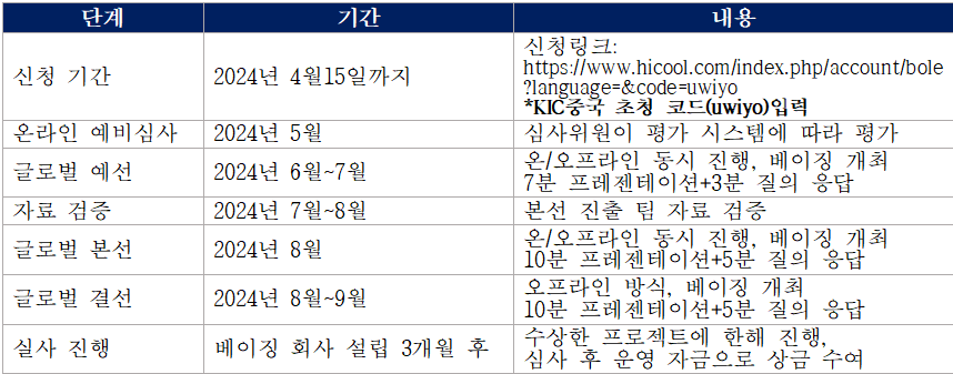 ㅇ 행사명: KIC중국&HICOOL 2024 글로벌창업가서밋&창업경진대회