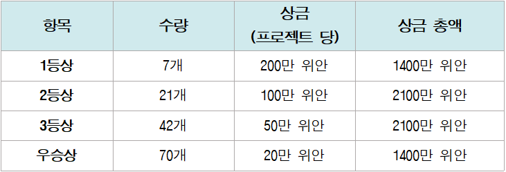 ㅇ 수상 구성: 총 140개 프로젝트 상으로 구성