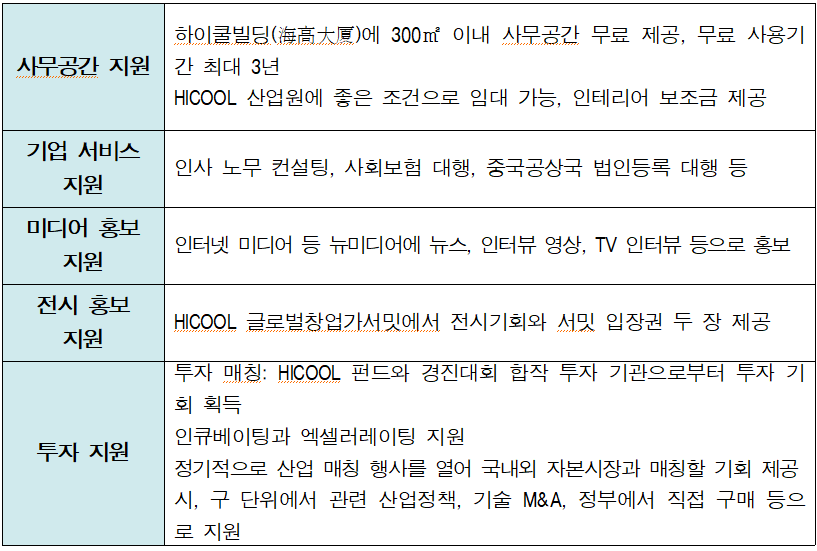 ㅇ 참가대상: 인공지능/가상현실/핀테크, 바이오헬스, 차세대 정보기술, 첨단 설비, 신에너지/신소재/에너지 절약 및 환경보호, 농업/식품 과학기술, 문화콘텐츠 분야의 창업자/팀