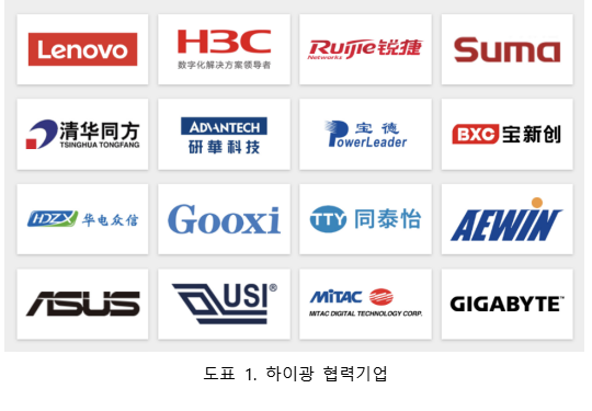 다수의 프로세서 코어가 내장되어 있고, 범용 고성능 주변 장치 인터페이스가 통합되어 있으며, 완벽한 소프트웨어 및 하드웨어 생태계와 시스템 보안 메커니즘을 갖추고 있음. 다양한 응용 환경에 따라 하이광 7000 시리즈, 5000 시리즈, 3000 시리즈 제품을 제공함 |