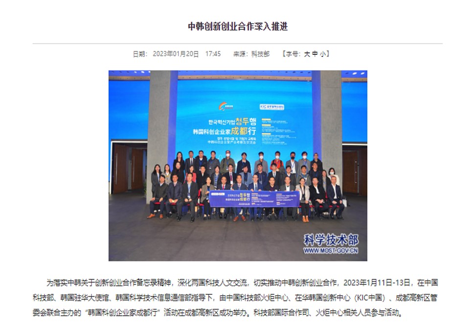 中华人民共和国科学技术部| “韩国科创企业家成都行”活动在成都高新区成功举办